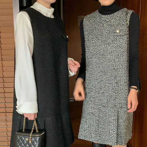 코코블랙 / 트위드 플리츠 원피스 (2color)