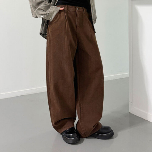 [옷자락] 여자 핀턱 피치기모 와이드 벌룬핏 루즈핏 키큰녀 바지