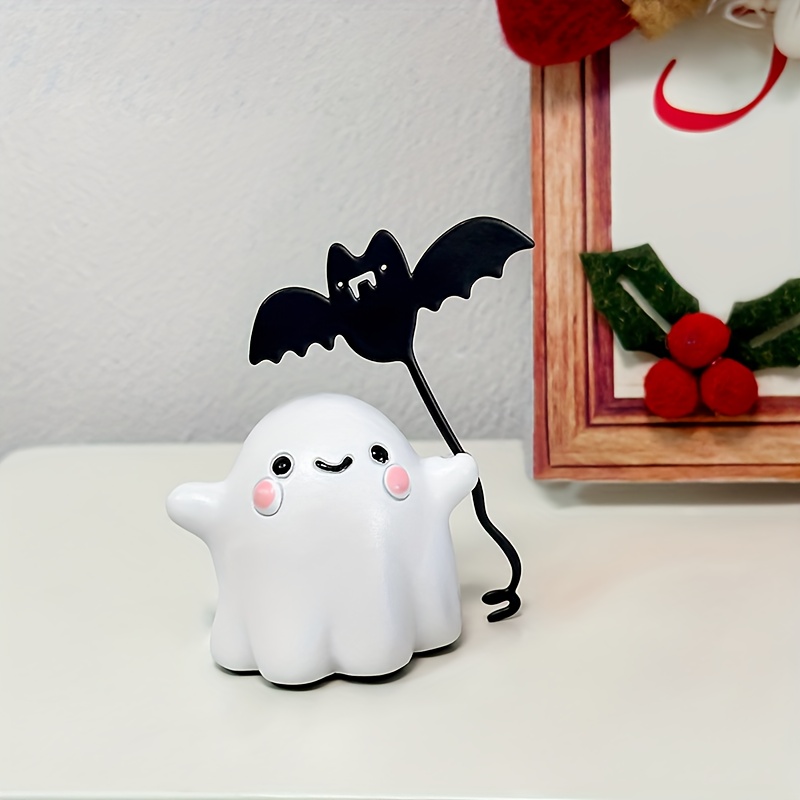 TEMU 두려운 할로윈 유령 & 박쥐 조각상 - 검은 우산이 있는 레진 데스크탑 장식, 클래식 판타지 테마, 집, 사무실 또는 파티 장식에 적합, 이상적인 집들이 선물, 할로윈 장식