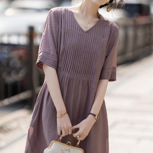 러블리 세로 핀턱 버튼 롱 원피스 3color 린넨 여름 루즈핏 주름 브이넥