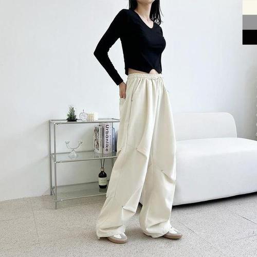 [다잇템][다잇템] 여자 고무줄 드로우코드 미니멀리즘 핀턱 리벳 넓은 조거 팬츠_23456312_588872
