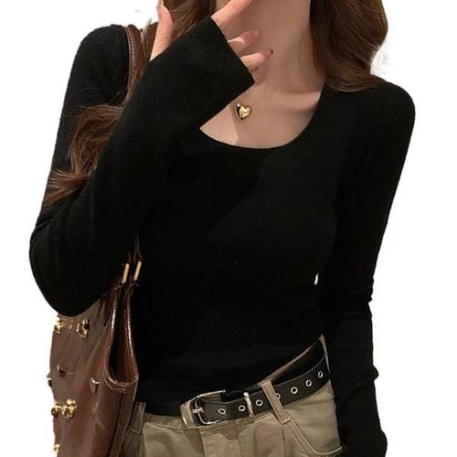 [다잇템]여자 U넥 패션 핑거홀 롱슬리브 티셔츠