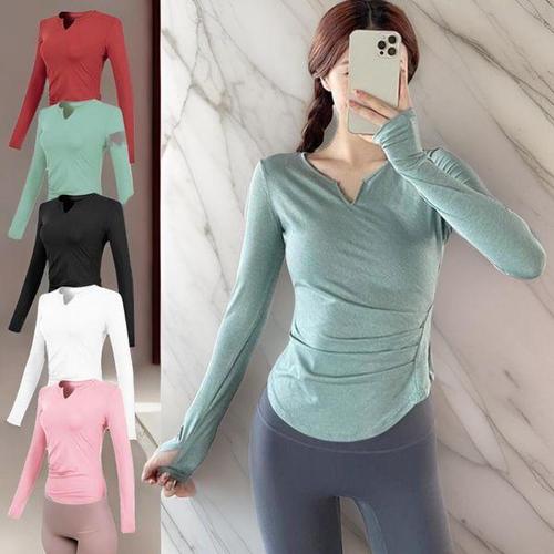 [다잇템_패션]여자 편한 핑거홀 롱슬리브 슬림핏 V넥 티셔츠