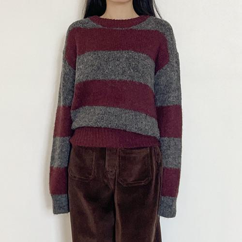 [반해써][5color] 스트라이프 라운드넥 단가라 루즈핏 니트 T_YW1239