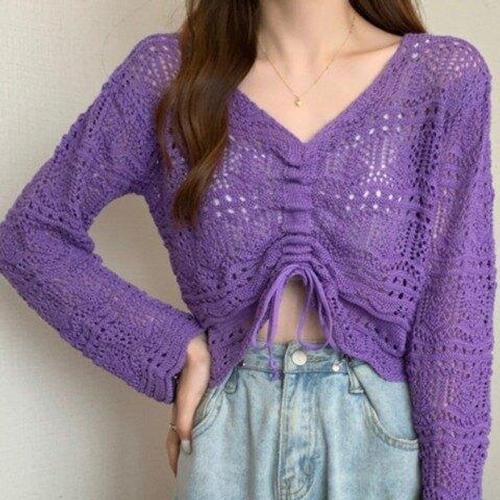 [페리엠]트렌디한 무드 펀칭 셔링 디테일 핑키가디건