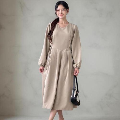 [옷자락]여성 가을 하객 패션 리본 플리츠 퍼프 청순 롱 드레스