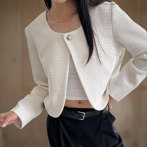 [신상오픈런]여성 가을 하객 패션 트위드 싱글 버튼 볼레로 크롭 울 자켓