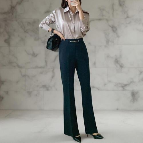 [다잇템][다잇템] 여성 나팔 출근복 편한 검정 하객패션 사슬 FW 슬랙스_23020313_588872