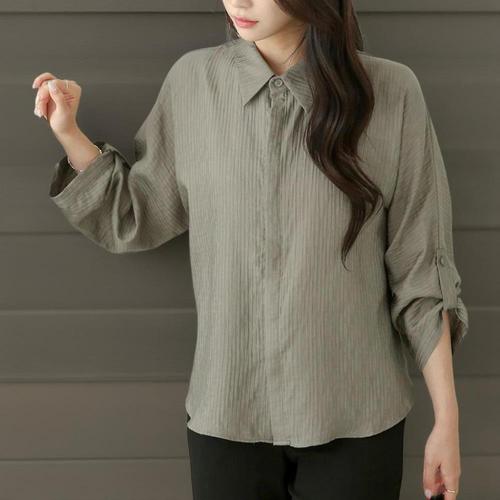 [미라클세븐]여성 가을 링클 프리 히든 버튼 7부 카라 셔츠 하객 패션