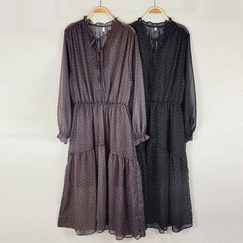 [다잇템_패션]여자 가을하객룩 비침 땡땡이 티어드 롱원피스