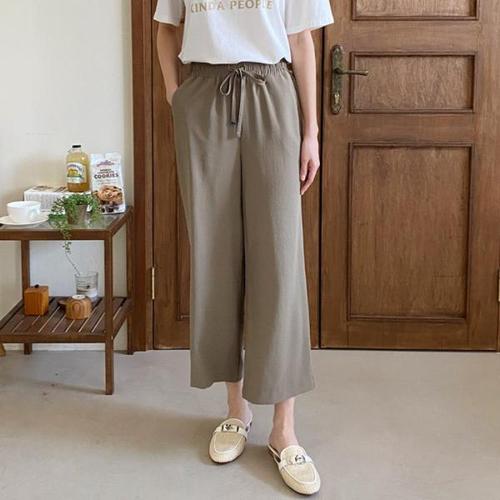 [옷자락]여자 고무줄 하늘색 와이드코튼팬츠 SS 클래식 바지