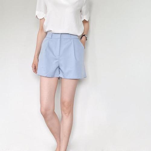 [옷자락]여자 슬림핏 H라인 슬렌더룩 3부슬랙스 하늘색 숏팬츠