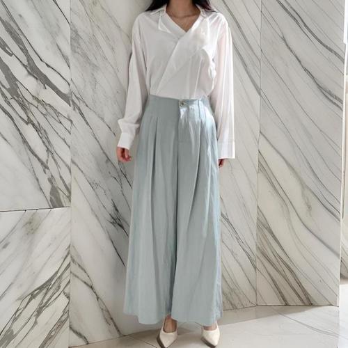 [다잇템_패션]여자 하늘색 와이드슬랙스 에이라인 바지