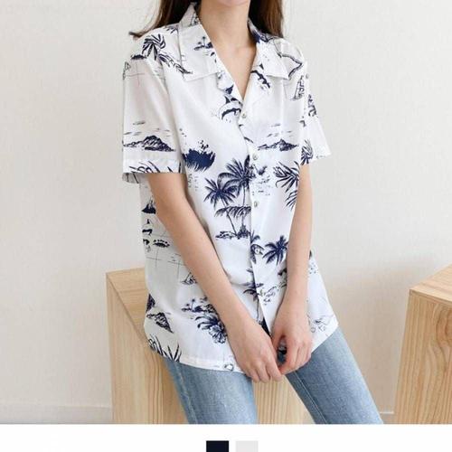 남녀공용 하와이셔츠 하와이안 비치 셔츠 여행 바다 바캉스룩 비보뉴