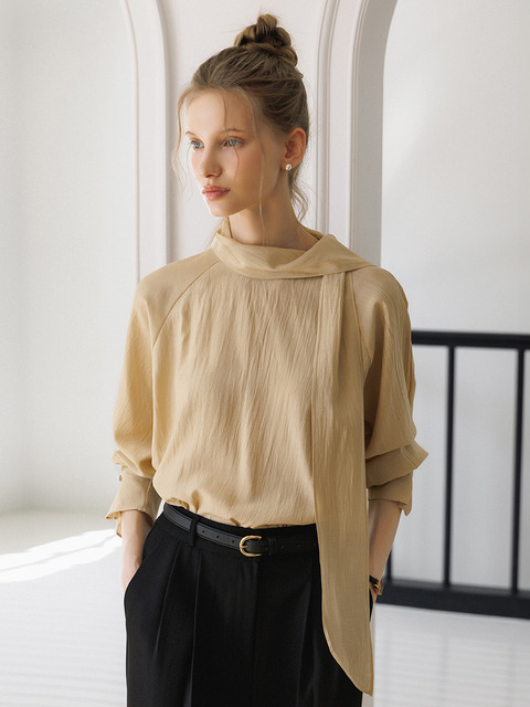 [커스텀에이블] 클래식 하이넥 리본 블라우스_T2602BL018A