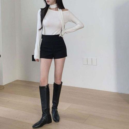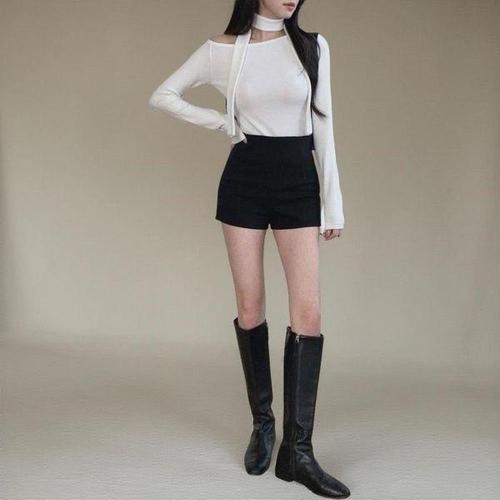 [다잇템]여자 하이웨이스트 겨울숏팬츠 검정 반바지