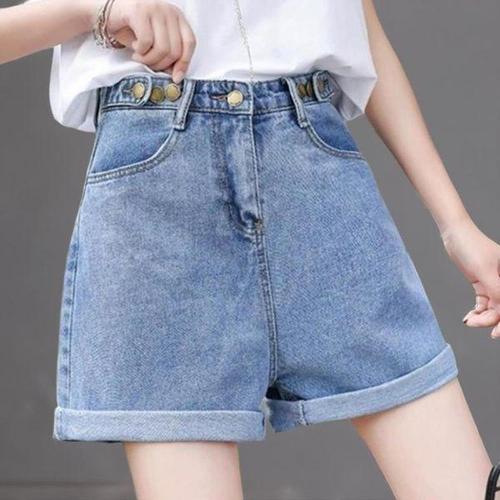 마켓피아 여성용 여름 하이웨이스트 레트로 5부 데님 반바지