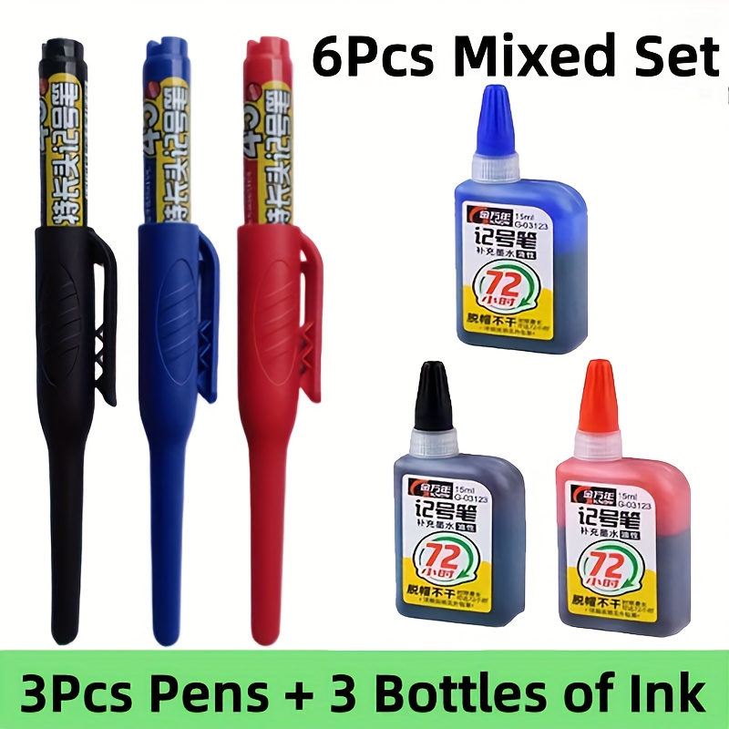 TEMU 롱 45mm 팁 블랙 블루 레드 롱 헤드 마킹 펜 세트 (리필 포함), 깊은 구멍 목공 타일 마커 펜, 건축 공학용 빠른 건조 - 정밀 도면 도구, 오일 기반 잉크, 내구성 리필