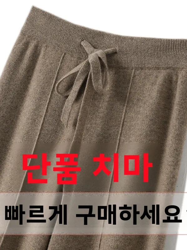 하이웨이스트 니트 울 와이드 레그 팬츠 롱 기장 캐주얼 플로어 렝스 드로스트링 루즈 슬리밍 가을 겨울 여성용 바지