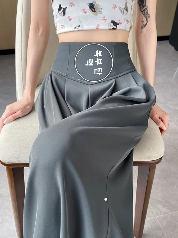 그레이 와이드 레그 수트 팬츠 여성용 겨울 얇은 루즈핏 캐주얼 롱 팬츠 하이웨이스트 드레이핑 효과 편안한 핏