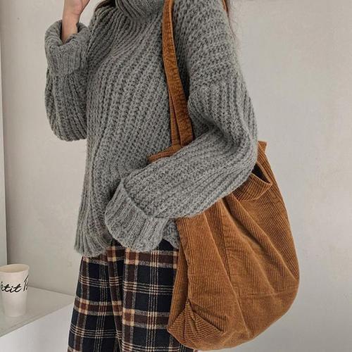 [XBK8J9K8_48]지퍼 백 숄더 코듀로이 토트 보조 학원 끈