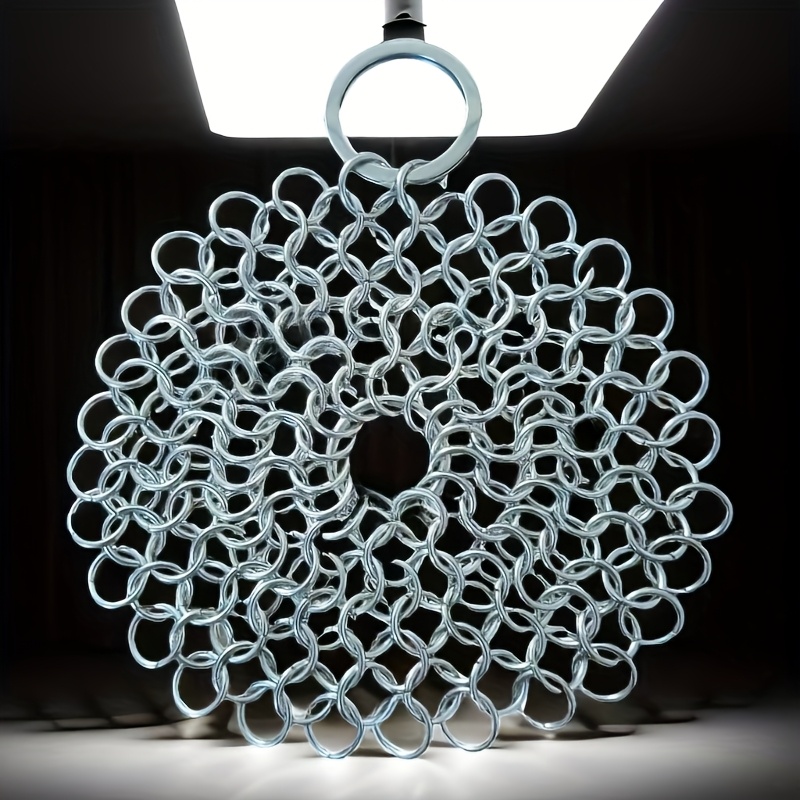 TEMU 316 스테인리스 스틸 스크러빙 네트 - 재사용 가능한 헤비듀티 원형 청소 패드, 걸이 링 포함, 냄비·접시용 무스크래치 주방 세척기, 내구성 강한 녹 방지 디자인|수세미