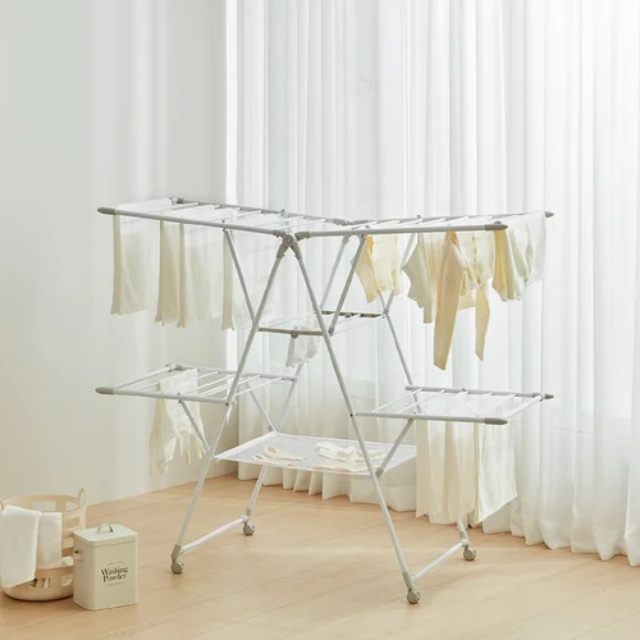 한샘 이동식 두꺼운 이불 건조 양날개 건조대_플러스 메쉬형 4인 가족 빨래