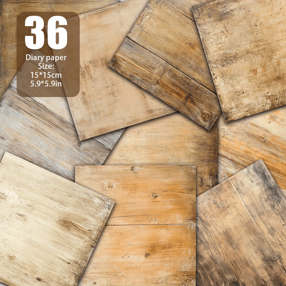 TEMU 빈티지 오래된 나무 무늬 데스크탑 스크랩북 종이, 핸드메이드 종이, 빈티지 다이어리 및 정크 다이어리에 적합한 재료용 종이, 핸드메이드 배경 카드 매트, 인사말 카드 제작 배경 장식 등 다양한 용도 사양: 5.9*5.9인치 36장|다이어리