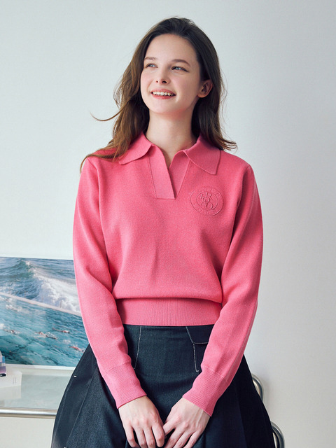 [로드로아르] 시그니쳐 카라 긴팔 니트 핫핑크