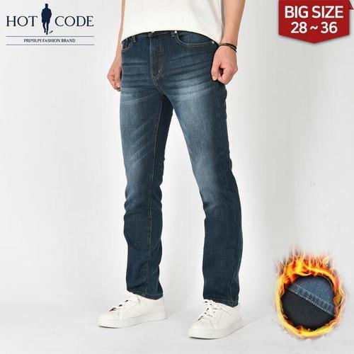 핫코드 겨울용 남자 빅사이즈 스판 본딩 기모 청바지 HC1019