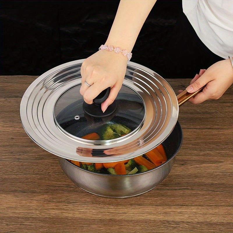 TEMU 스테인리스 스틸 다용도 엣지 유리 뚜껑 (냄비 및 프라이팬용) - 내구성, 내열성, 간편한 세척 주방 뚜껑, 다양한 크기에 적합한 안전한 핏, 가정 및 레스토랑 사용에 적합, 냄비용 주방 뚜껑