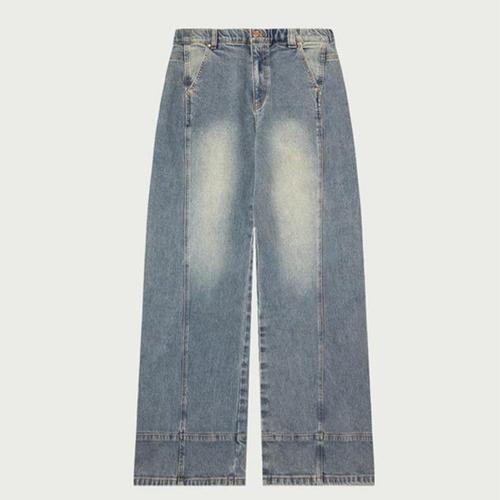 [행텐][스프링페어]여성 히든밴딩 투턱 워싱 와이드 데님팬츠_ph_KJ