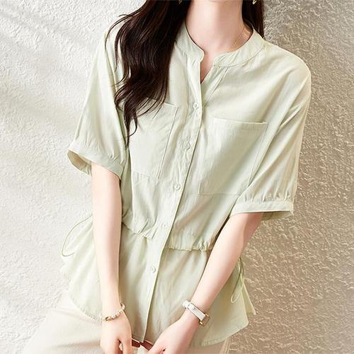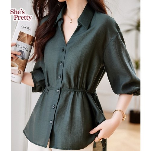 [패션시그널] 롤업소매 허리스트링 셔츠 블라우스 EC09C8