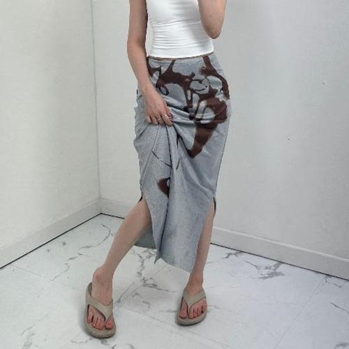 [엄지척]사이드 더블 트임 허리 스트링 나염 패턴 롱스커트_19957254_667501