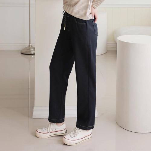 [옷자락] 여성 캐주얼 허리스트링 레이온 스판 일자 밴딩 데님