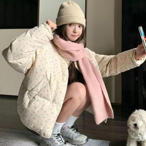 [셀러허브_여성트랜드패션]여자 숏패딩 탱크 일상룩 포근 꽃무늬 점퍼