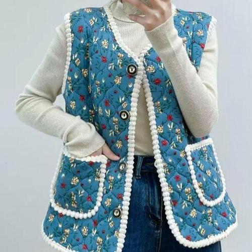 [셀러허브_여성트랜드패션]Rly 여성 부드러운 꽃무늬 방한 조끼 촌캉스 할머니