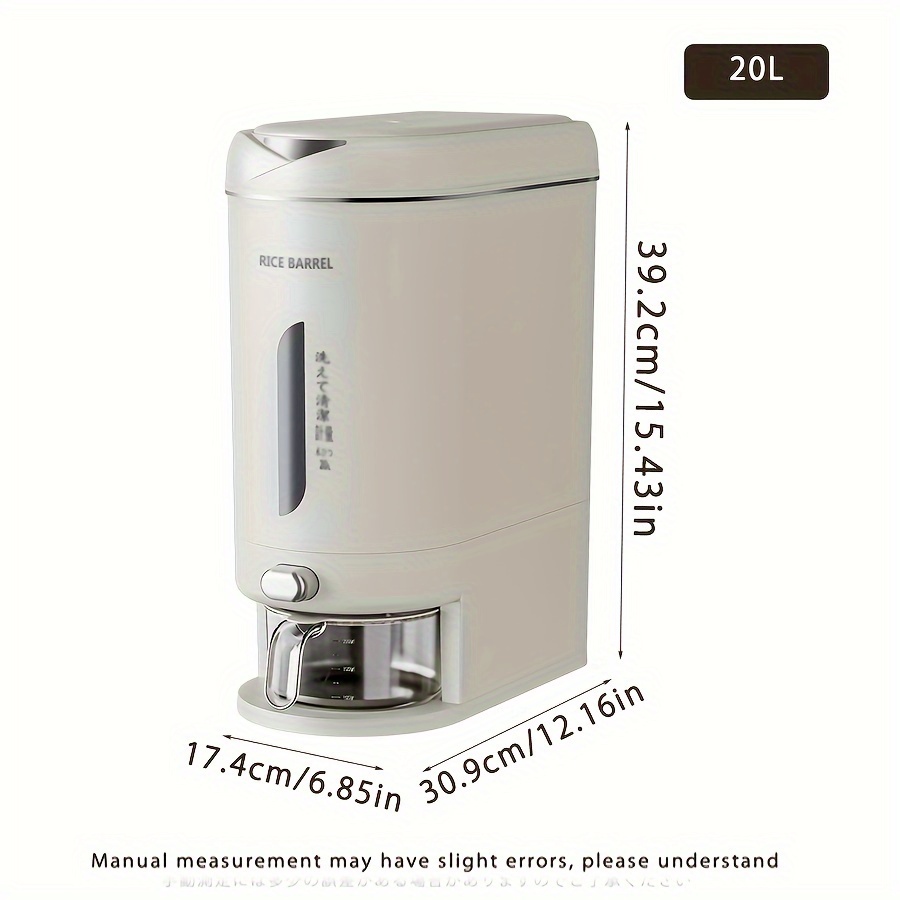 TEMU 1개. 누름식 쌀통. 플라스틱. 투명. 주방용. 가정용/상업용. 용량 10L/20L. 전기 불필요. 슬림핏 쌀통. 장식용. 삶의 질 향상. 소형 무지방 입자