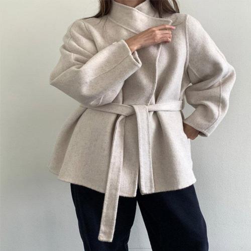 [헤레이스](울100%)하이넥 핸드메이드 하프코트_YMSH25FW321