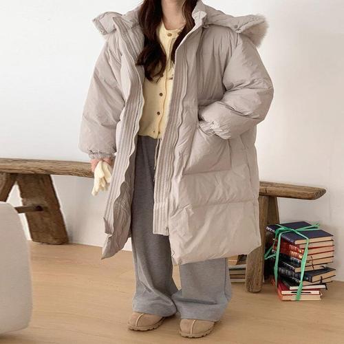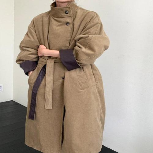 [헤레이스](경량오리털100%)코듀로이 배색 롱다운 코트 _YMSH25FW319