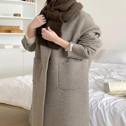 [헤레이스](울100%)후드 목도리 핸드메이드 울코트_YMSH25FW329