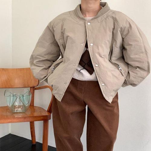 [헤레이스](덕다운100%)골덴 라운드배색 다운 패딩_YMSH25FW322