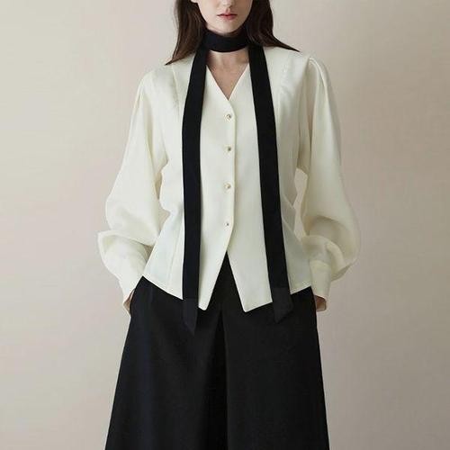 [헤레이스](스카프세트)퍼프볼륨 블라우스_YMSH25FW113