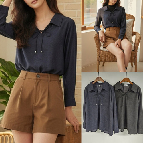 [셀러허브_여성트랜드패션]아이우먼 무지트임카라리본남방 SMV606M511 빅사이즈