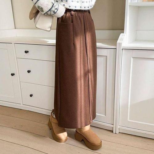 [다잇템]여자 헤링본 FW 보온 고무줄 슬릿 롱스커트