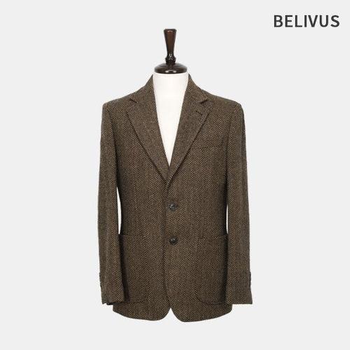 [빌리버스]빌리버스 남자 겨울 브라운 모노헤링본 울혼방 싱글 테일러드 자켓 BVOT186