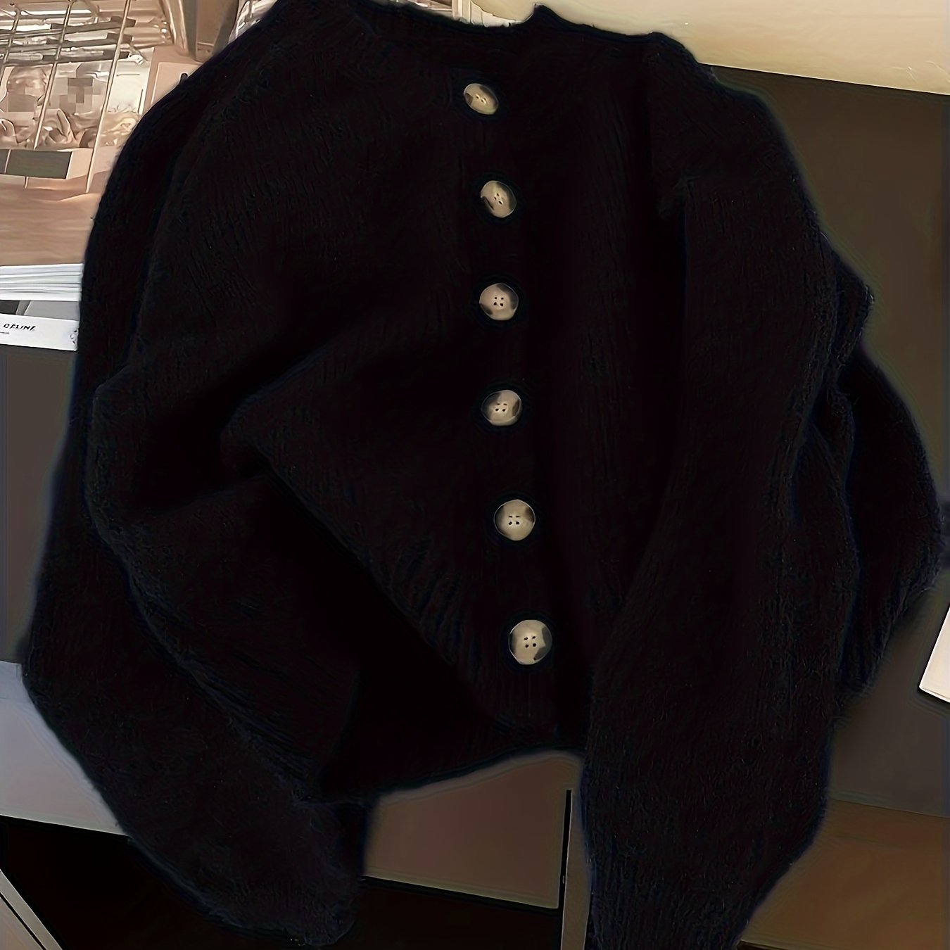 TEMU 여성 니트 가디건 스웨터 - 올 시즌 폴리에스터 단색 버튼 풀오버, 라운드 넥, 레귤러 핏