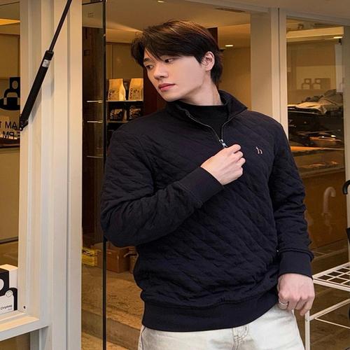 헤지스 남성 네이비 퀼팅 하프집업 맨투맨 (HZTS4D385N3)