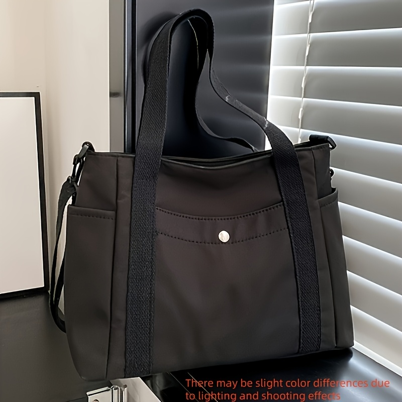 TEMU 솔리드 컬러 나일론 여성 토트백, 심플한 가방, 캐주얼 데일리, 핸드백, 지퍼 잠금, 다층형 경량 휴대용 토트백, 다양한 상황에 적합한 다기능 가방.