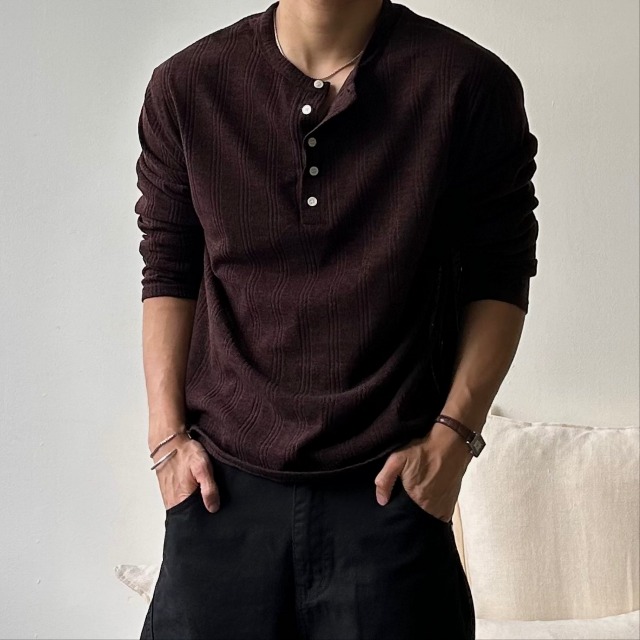 앨빈클로 3버튼 헨리넥 루즈핏 긴팔 티셔츠 AVT945